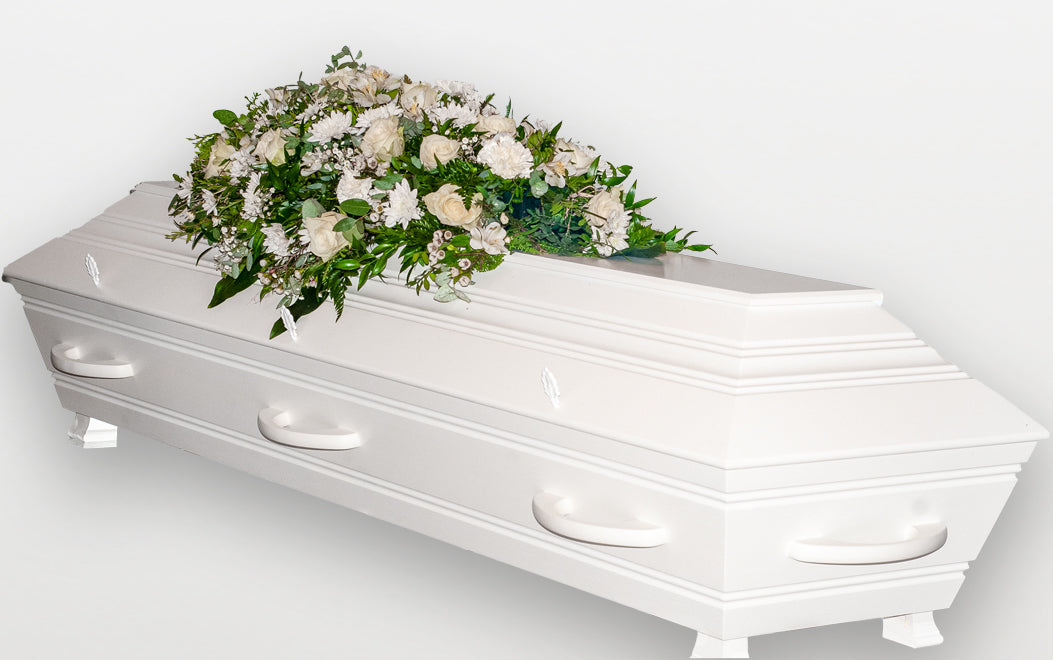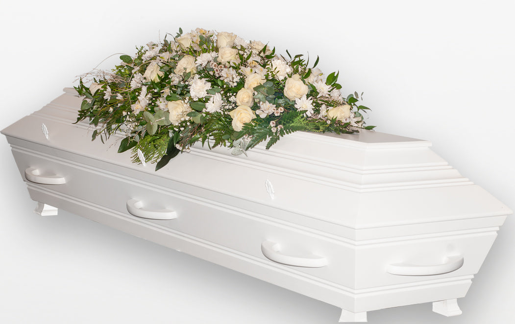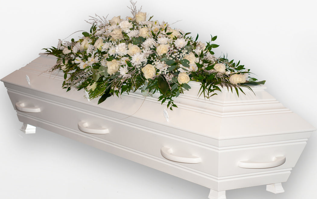 En vakker og verdig kistedekorasjon der du som kunde velger størrelse og farger. Våre blomsterdekoratører setter sammen blomster ut fra sesong og tilgjengelighet, med fokus på form og helhetlig uttrykk.